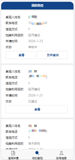 档案远程利用预约系统:支持师生校友通过实名认证或统一身份认证登录,在线提交查档、学籍证明办理等申请;实时跟踪审批进度,通过智能审批和自动数据脱敏处理反馈利用结果,实现远程服务安全可控。