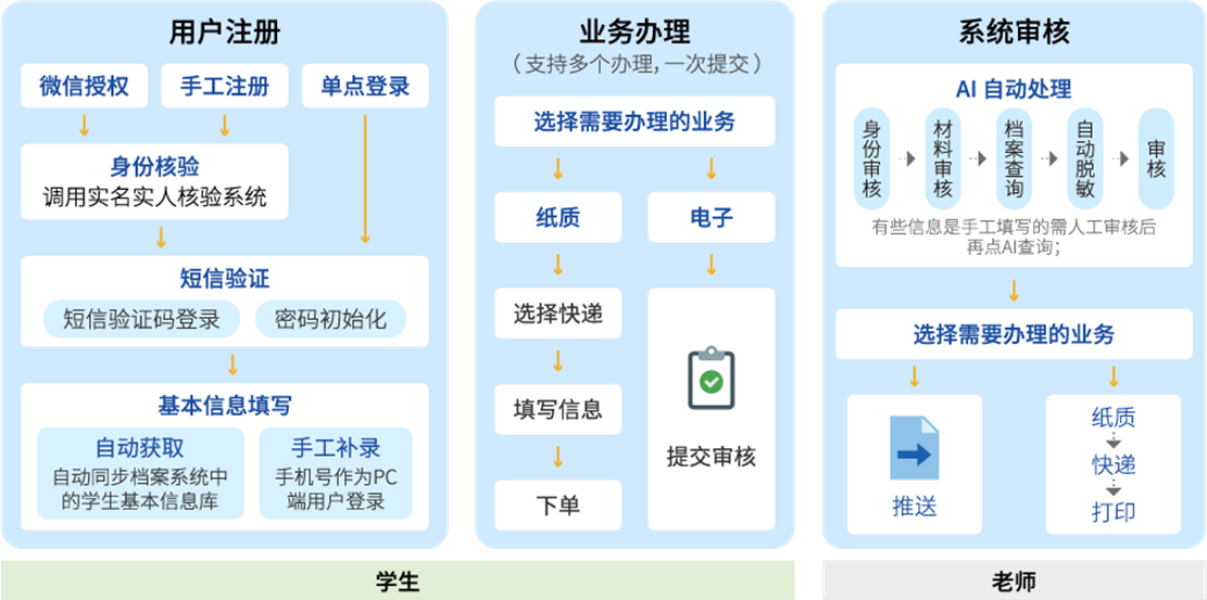 ● 服务体验全面优化:远程查档审核周期大幅缩短,师生满意度提升,档案管理人员工作量显著减少;