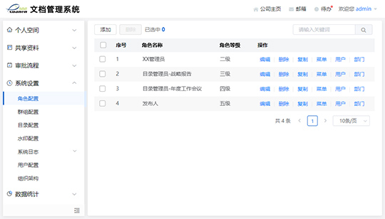 • 多级管理员:实现权限按部门、文件夹或其它管理项灵活分配;