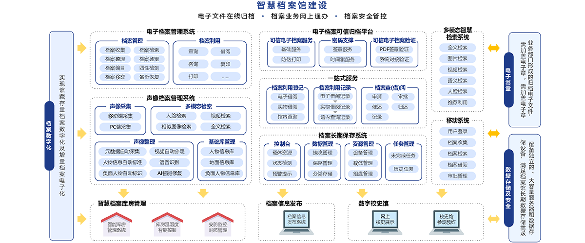 轩恩电子档案管理系统在符合政策要求的同时,拥有可用性高、兼容性强、响应速度快、易用性好等特点。专注于电子档案全生命周期一体化管理,满足电子文档资源的收集、整理、管理、利用、保存、鉴定、统计全过程的管理需求,为各类组织提供智慧、安全、专业的档案一体化服务,确保电子档案的真实、完整、安全、可用。